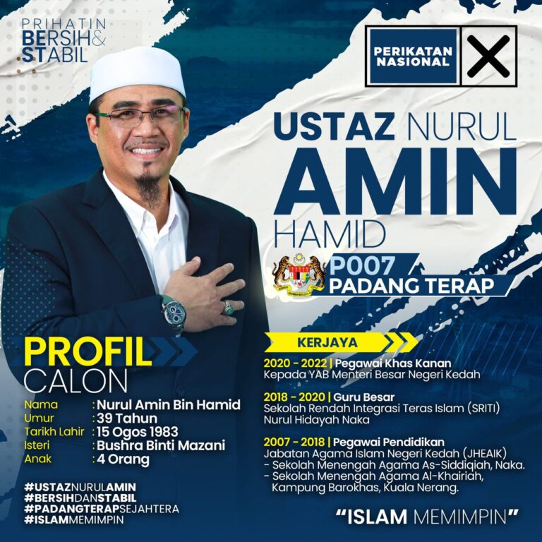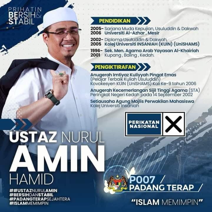 Ustaz Nurul Amin Bin Hamid dikenali sebagai seorang pemimpin masyarakat yang berpaksikan nilai Islam, disiplin dan amanah. Dengan pengalaman dalam pendidikan serta pentadbiran, beliau menekankan pendekatan yang praktikal: mendengar, menyusun, dan menyelesaikan.