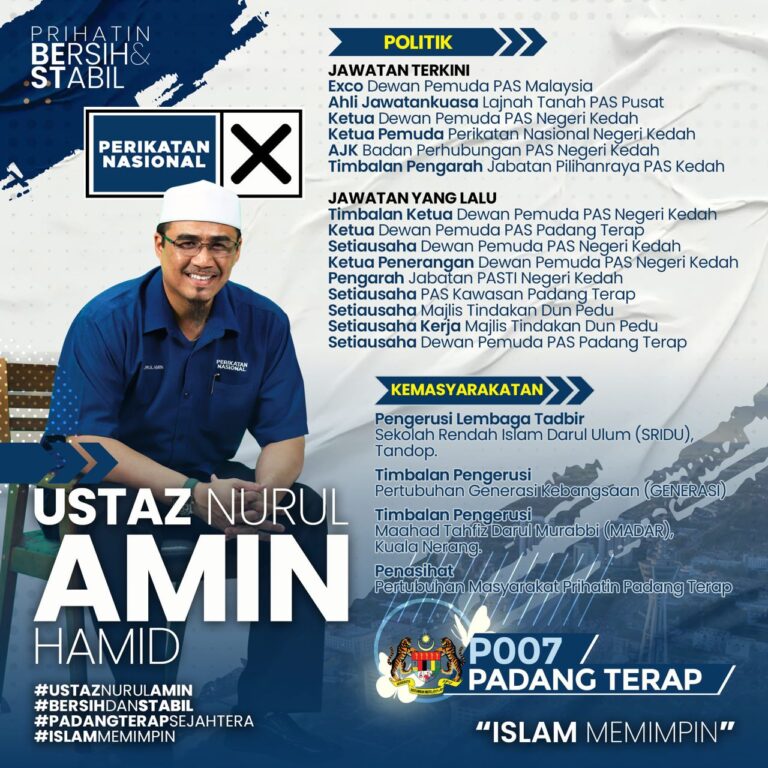 Membawa aspirasi “Prihatin • Bersih • Stabil” demi Padang Terap yang lebih sejahtera.